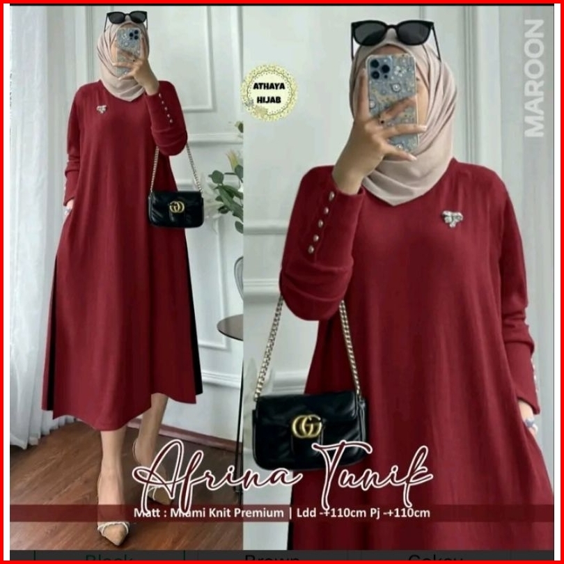 Tunik Knitt Rib Premium Tebal Atasan Wanita Muslimah Polos Belah Samping Terbaru