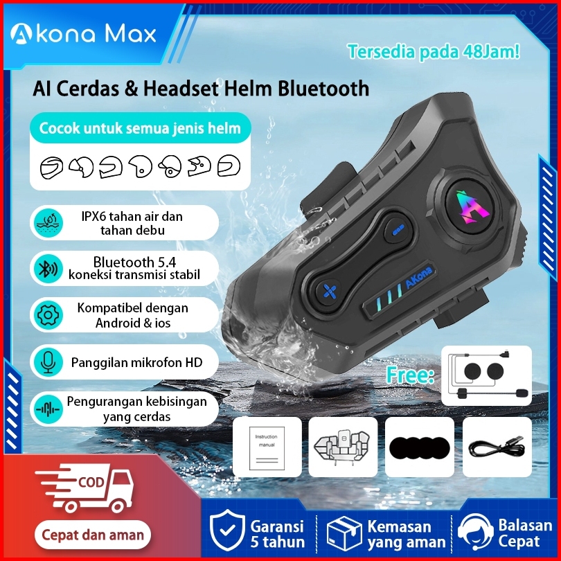 Akona Intercom Helm Motor Headset Helm Bluetooth Hands Free Ipx7 Tahan Air Headphone Helmet Wireless Free Microphone