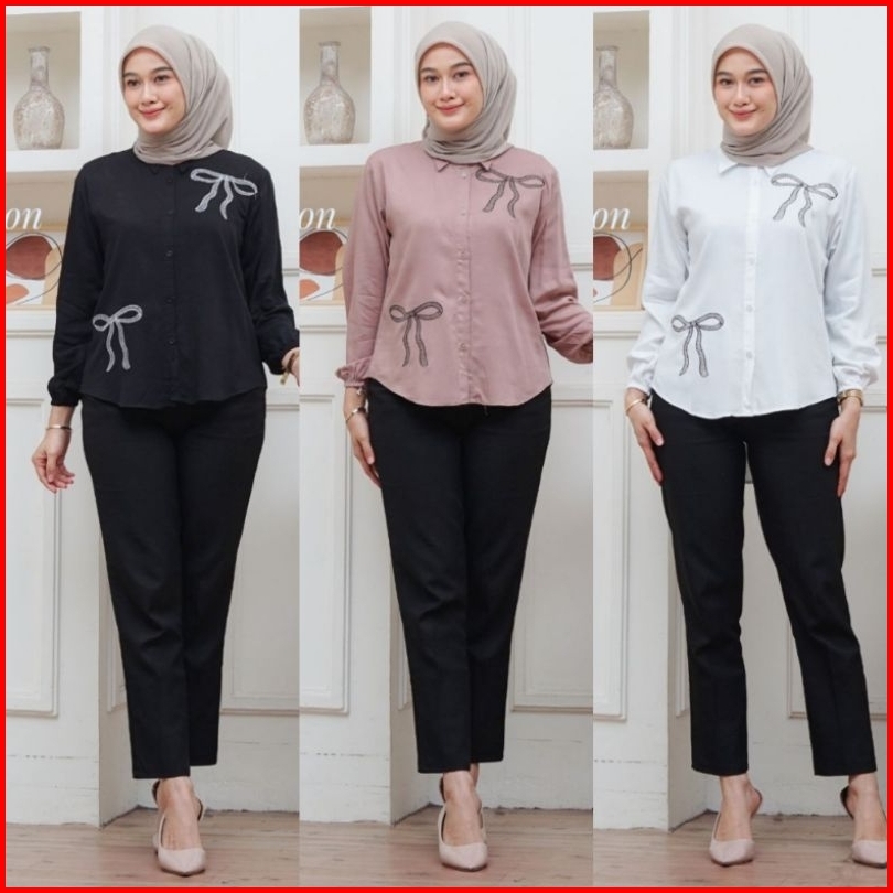 Cellia Atasan Wanita Bahan Rayon Twill Kemeja Wanita Kekinian Blouse Bordil
