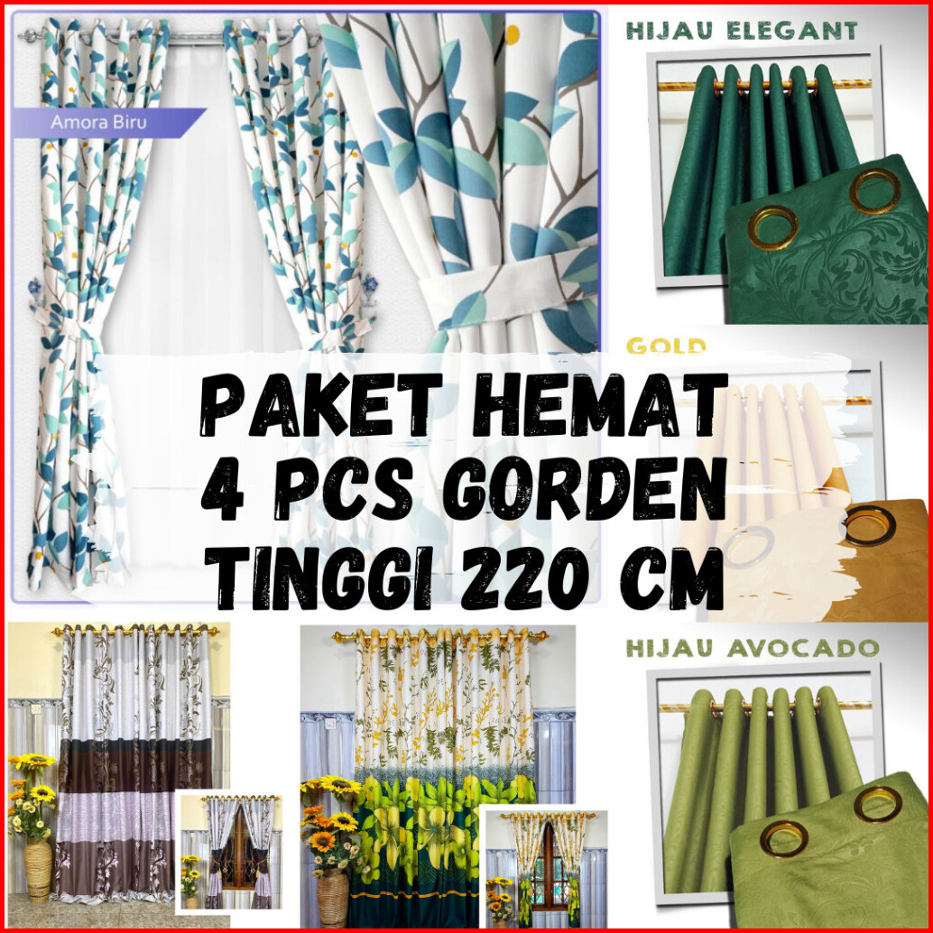 4 Pcs Paket Hemat Gorden Jendela Dan Pintu Kamar Minimalis Smokring 10 Ring Lebar 110 Tinggi 220cm