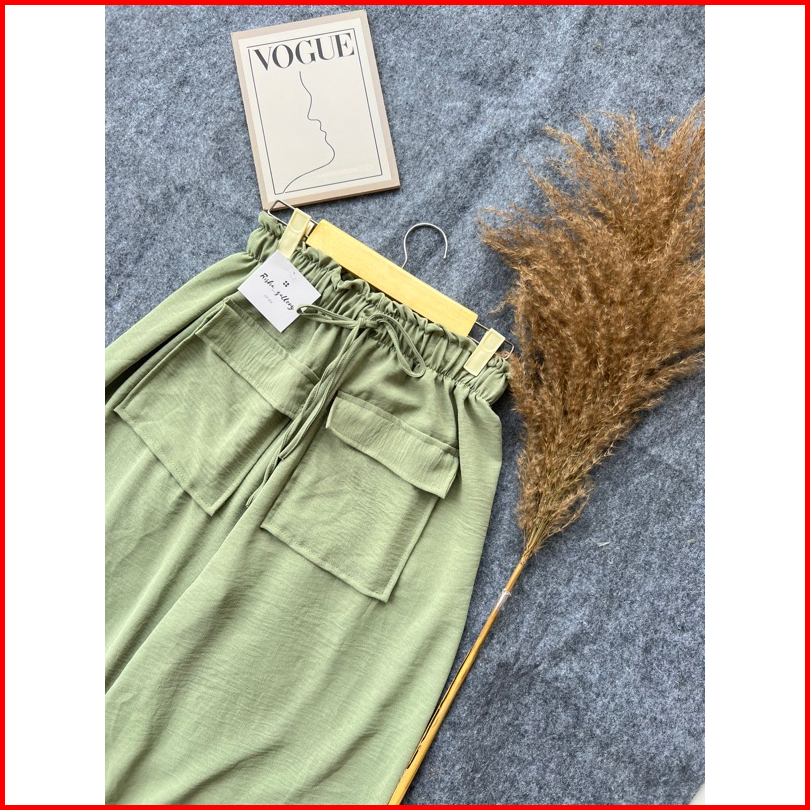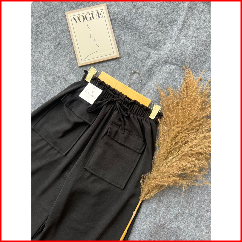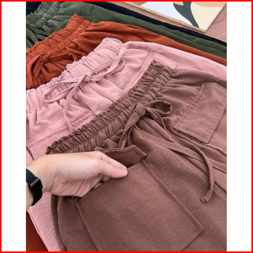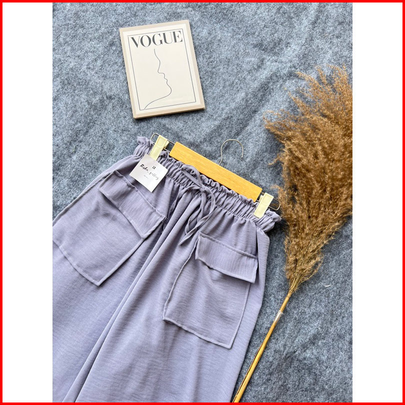Kulot Crinkle Kantong Depan Vintage Korean Minimalis
