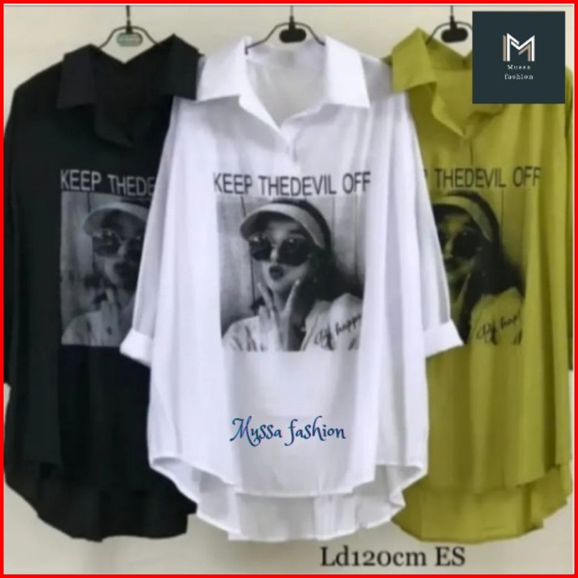 Tunik Jumbo Keep The Devil Kemeja Sablon Wanita