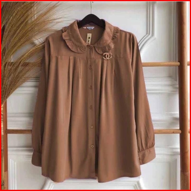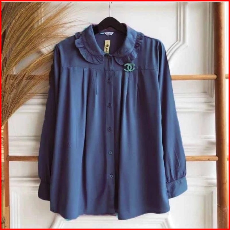 Atasan Geovani Best Seller Geovani Blouse Kemeja Polos Wanita Bahan Kringkel Model Kekinian