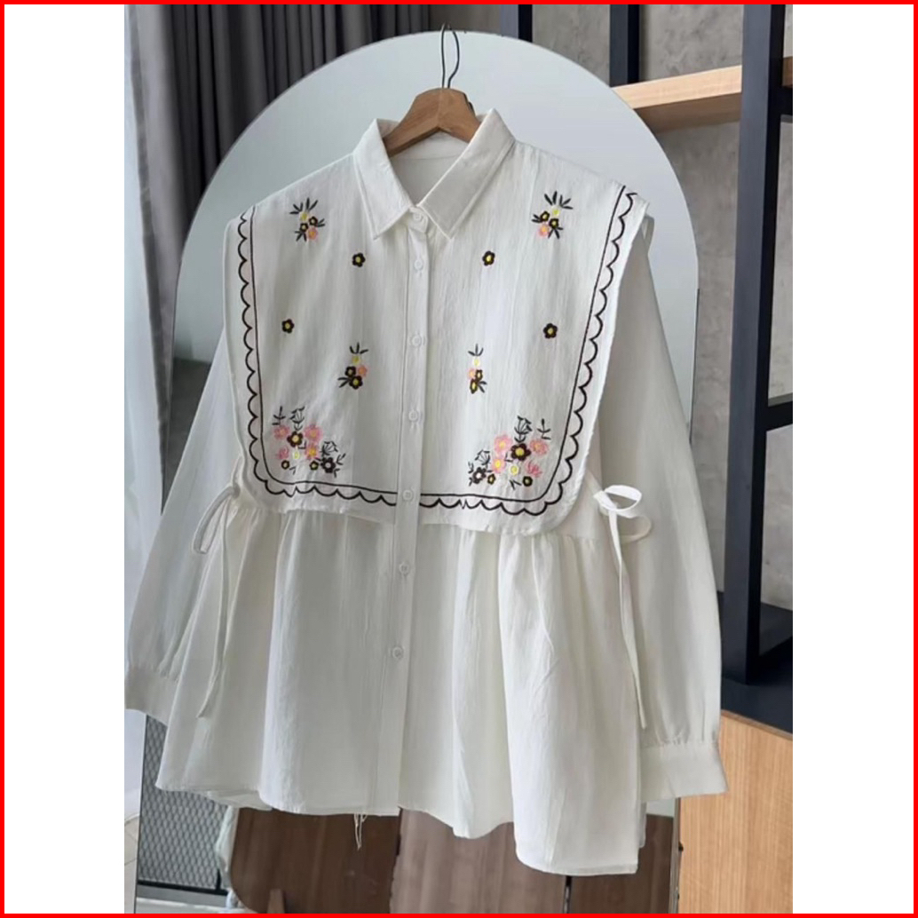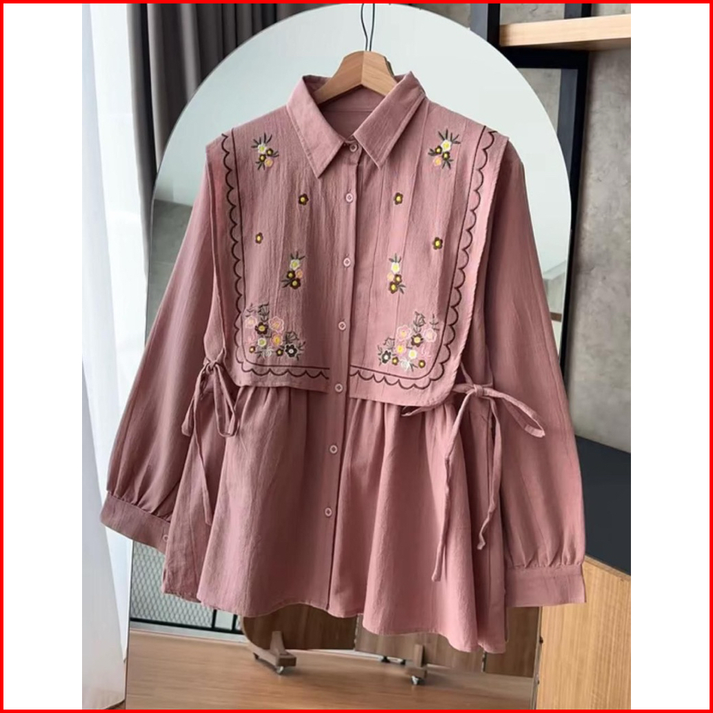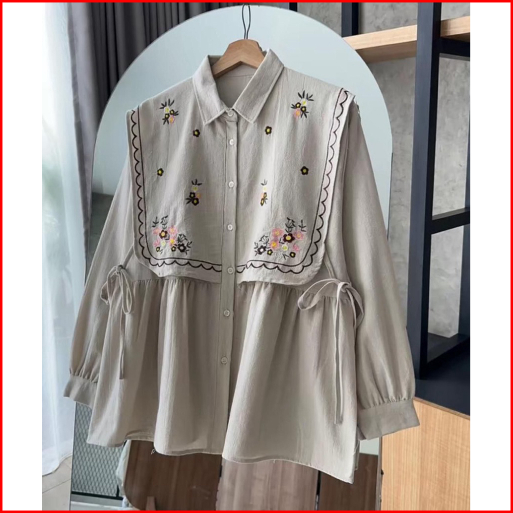 Narika Shirt Kemeja Vest Ikat Bordir Linen Premium Atasan Wanita Panjang