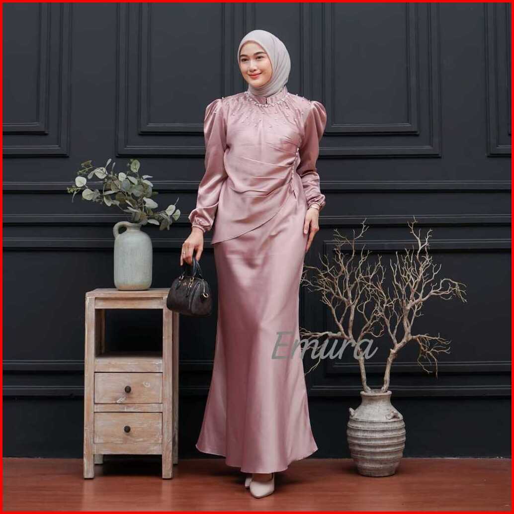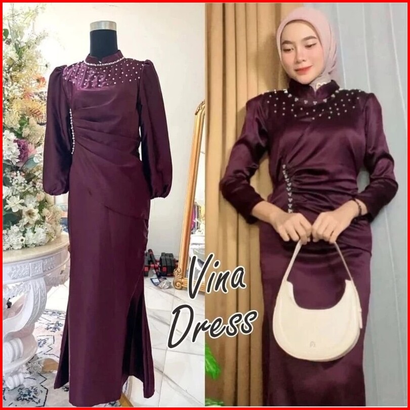 Vina Dress Spesial Burgundy Dress Kondangan Viral Termurah Gaun Kondangan Rok Duyung Dress Terbaru