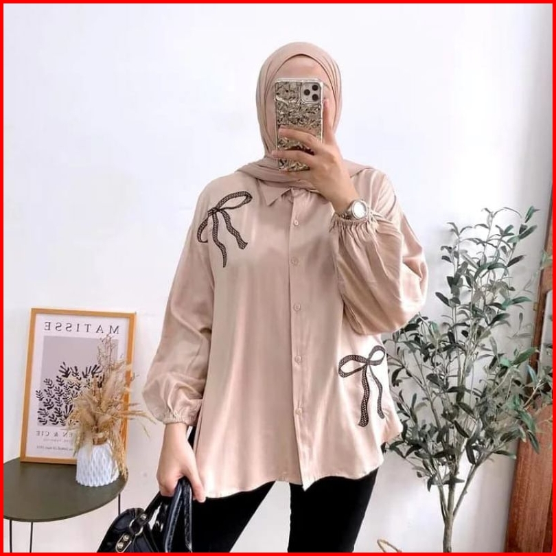Kemeja Luna Blouse Motif Pita Polimicro Jumbo