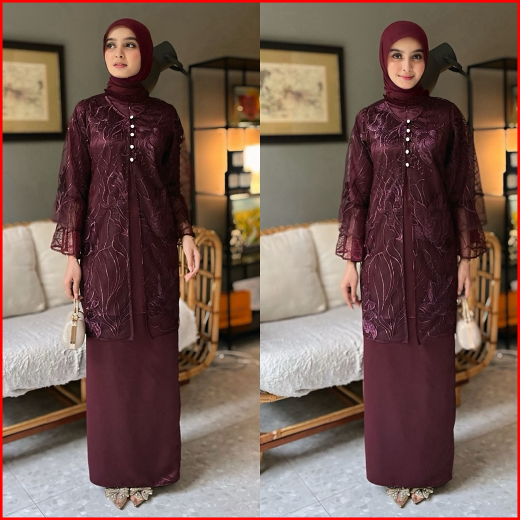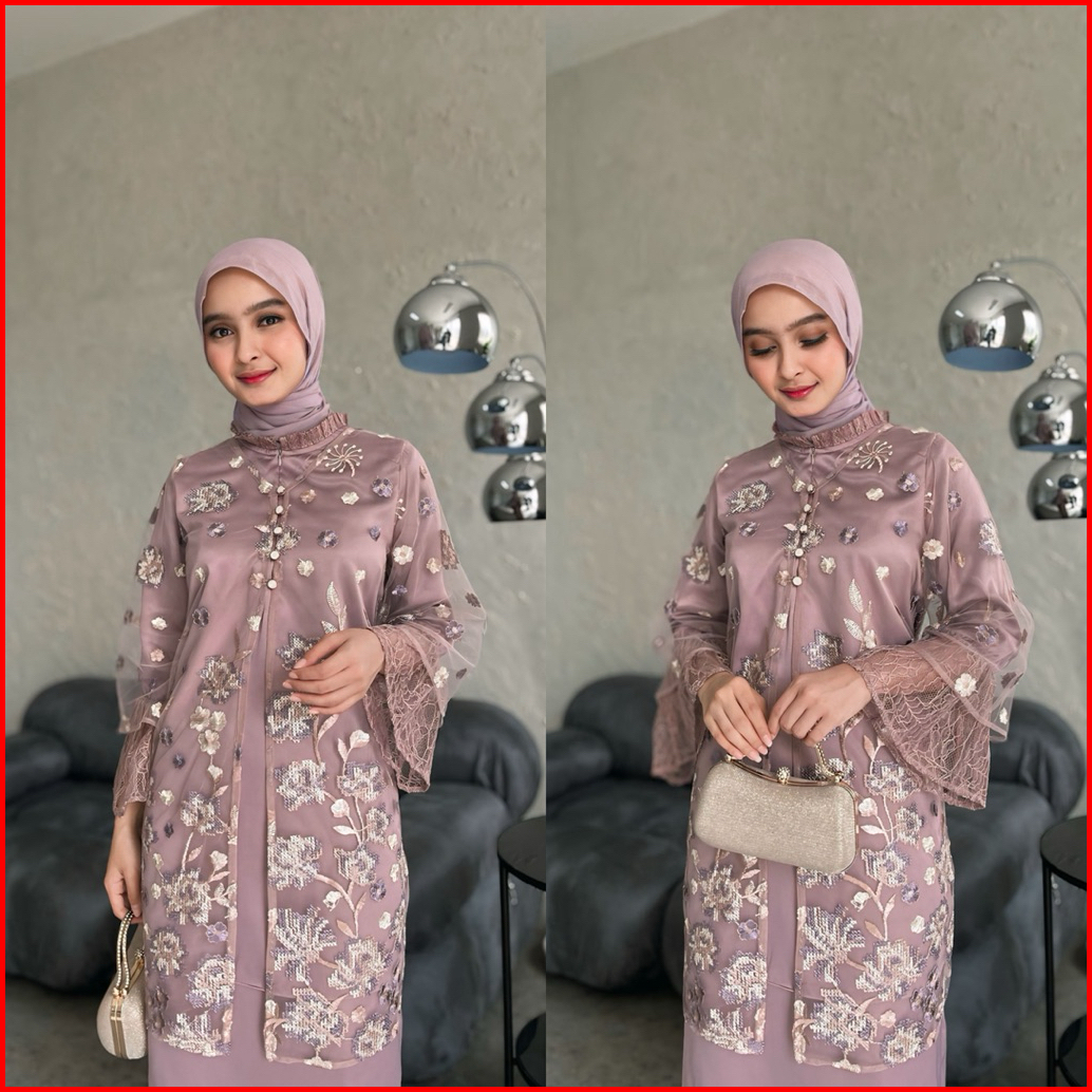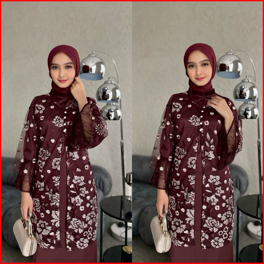 Hijablabel Freya One Set Tulle Bordir Original Baju Kondangan Oneset Kondangan