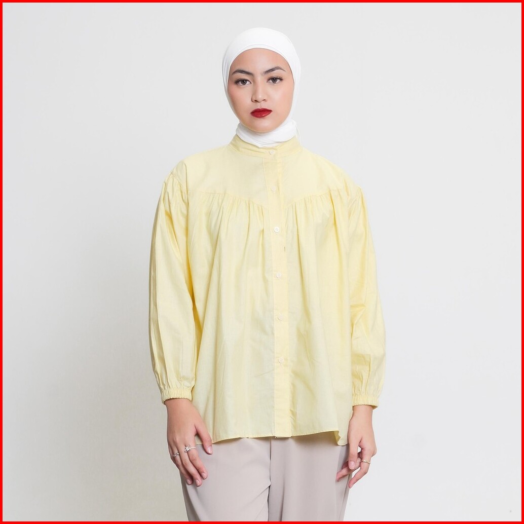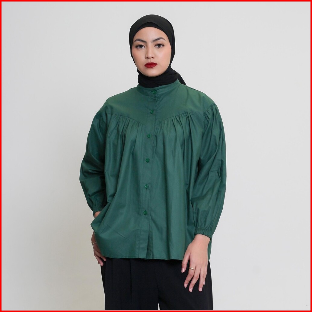 Elf Store - Emeralda Kemeja Wanita Kantoran Polos Kekinian Bahan Katun Jumbo Atasan Panjang Muslim