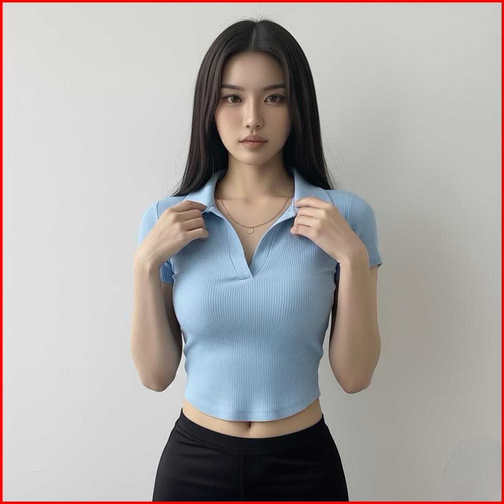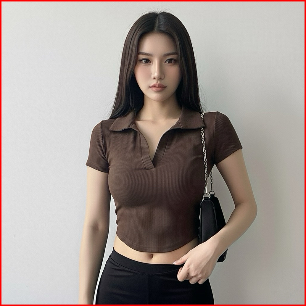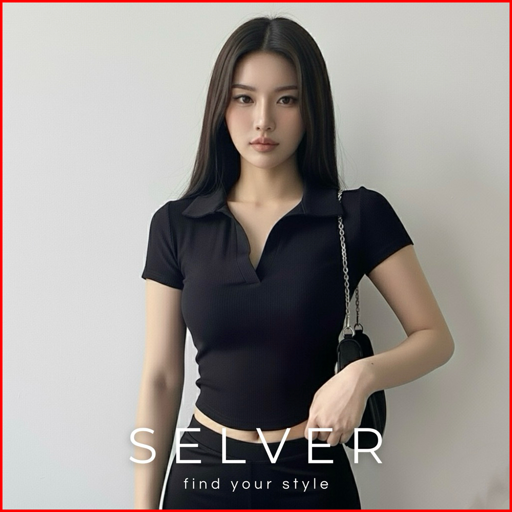Selver - Short Sleeve V Neck Crop Top Wanita Kekinian Rib Premium Korean Style S M L Xl