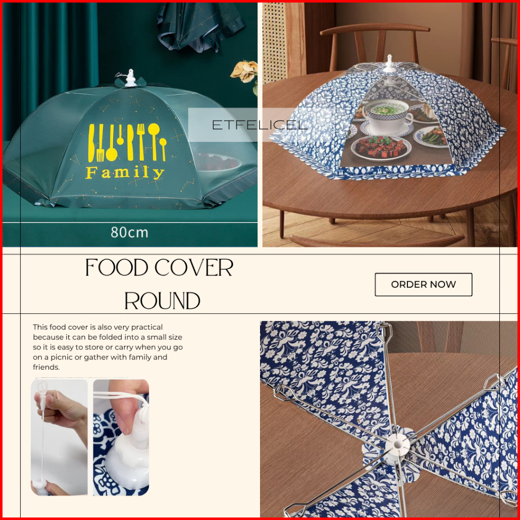Etfelicel Food Cover Round Tudung Saji Lipat Bulat Segi Shabby Penutup Makanan