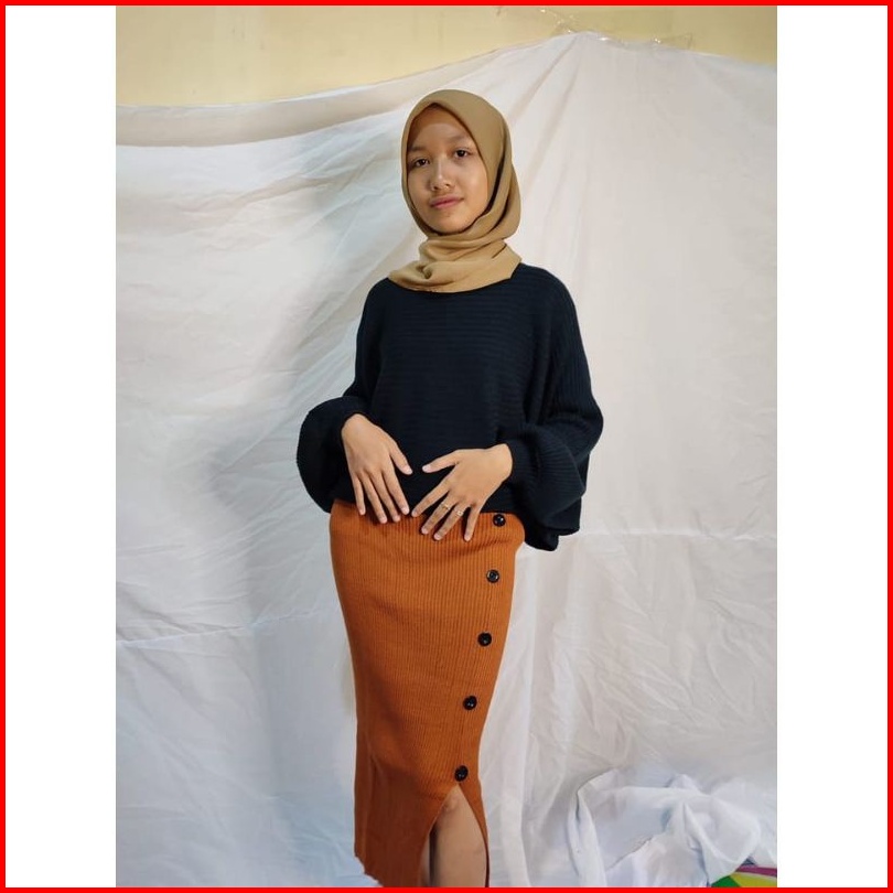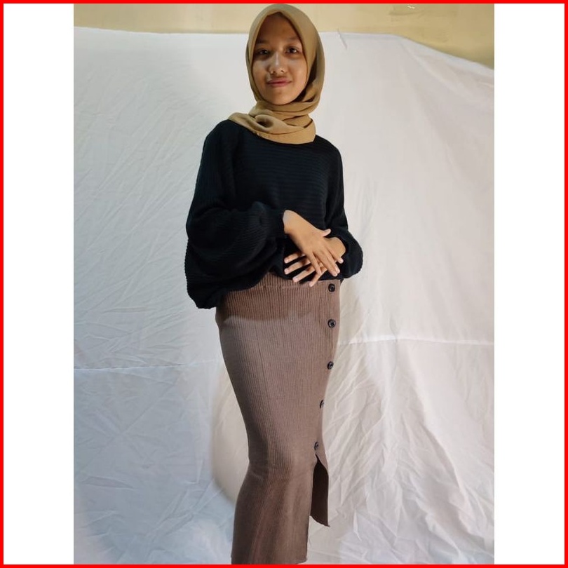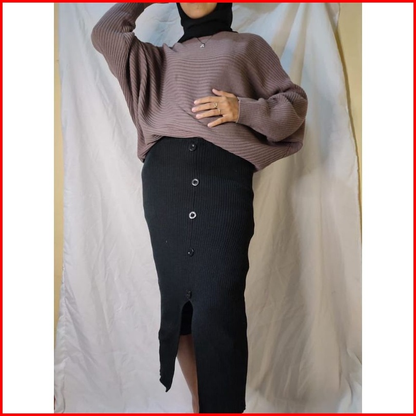 Rok Span Rajut Kancing Belah Pinggir Rok Midi Skrid Premium