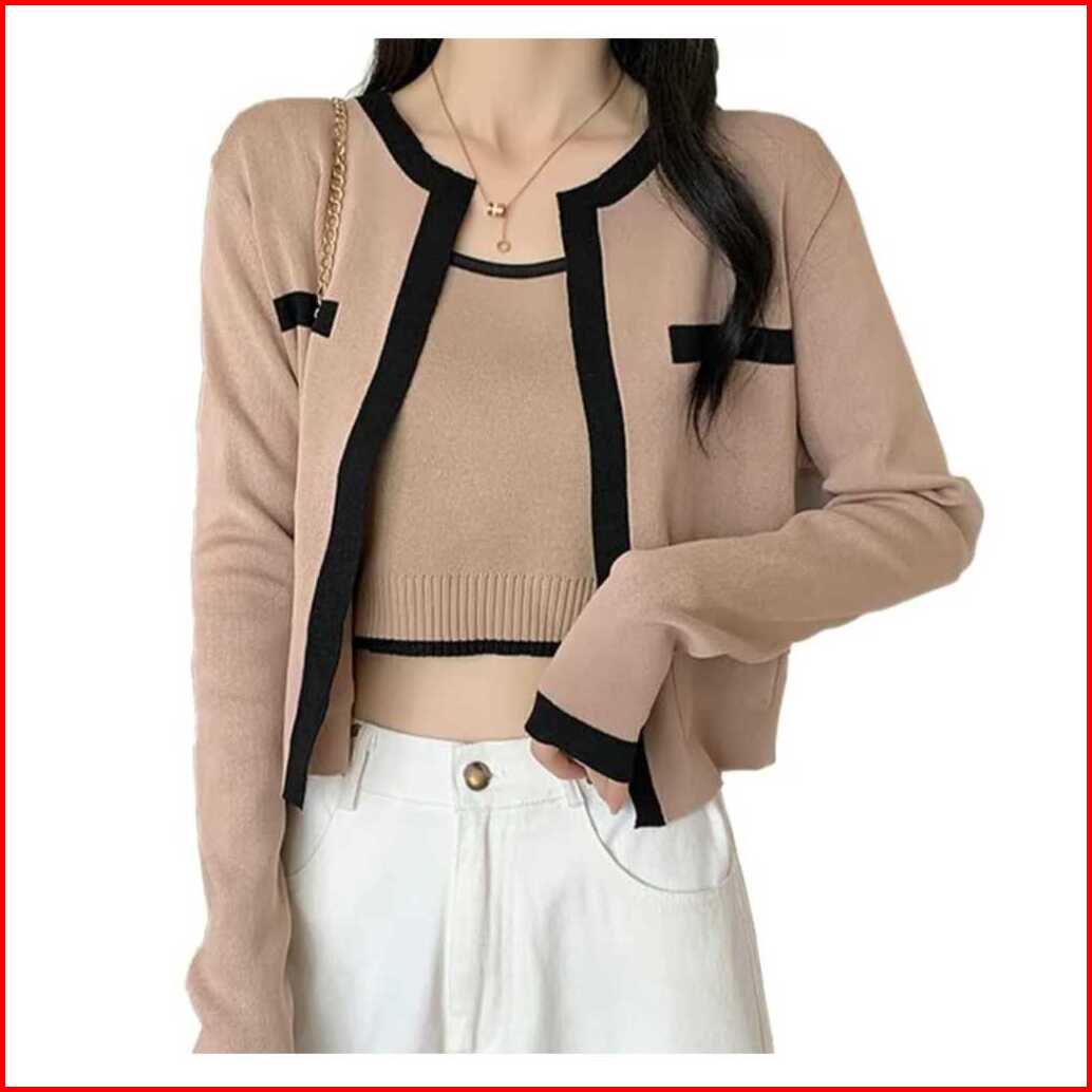 Atasan Tanktop Cardigan Set Lengan Panjang Kekinian Rajut Premium Baju Atasan Wanita Tanktop Cardigan Lengan Panjang Raj