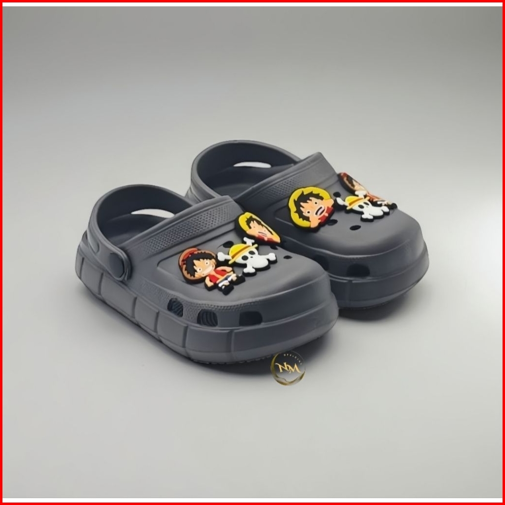 Sandal Anak Laki Karakter One Piece Lucu Nyaman Anti Slip Karet Ringan Model Terbaru Sendal Baim Cowok Tali Belakang Kar