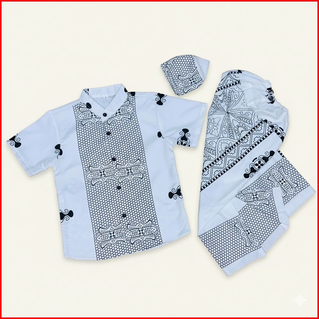 Baju Setelan Anak Muslim Sarkoci Anak Motif Batik Pekalongan Gus Iqdam Usia 1-10 Tahun