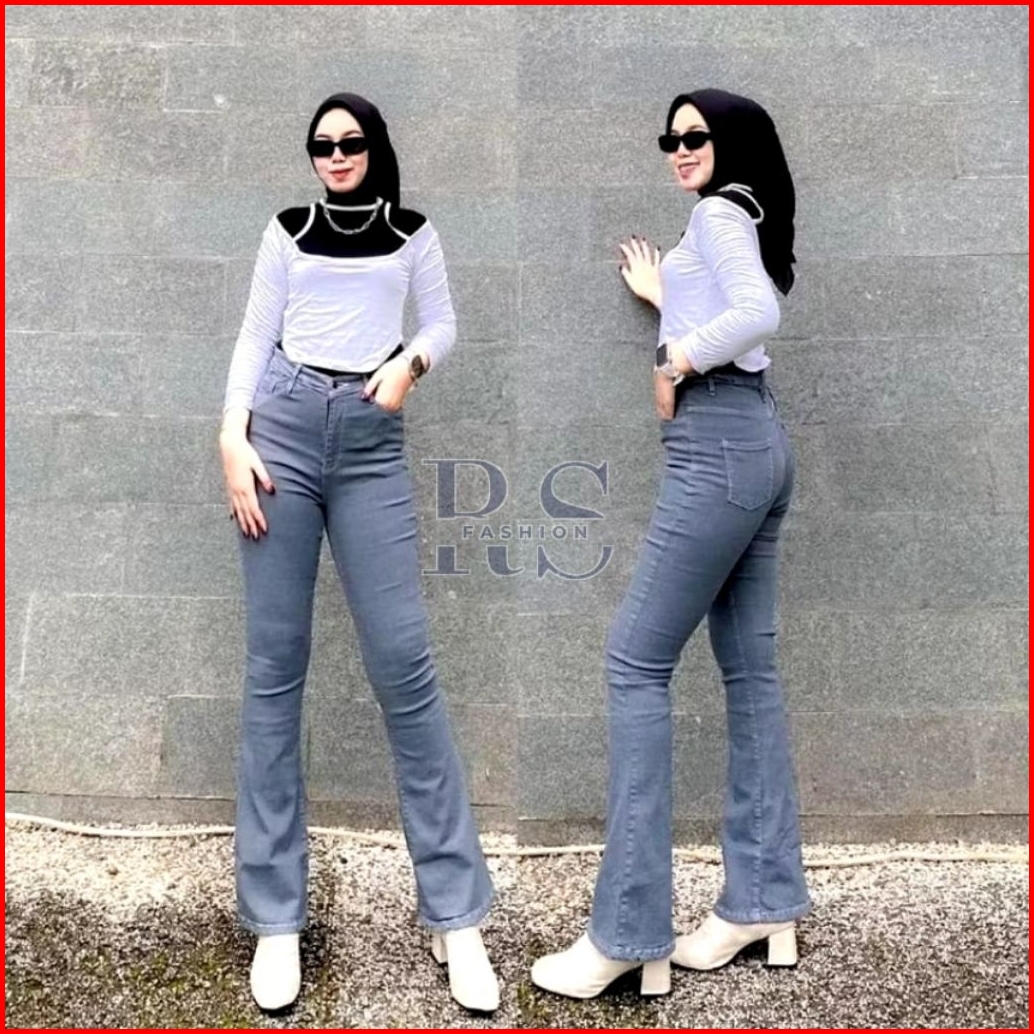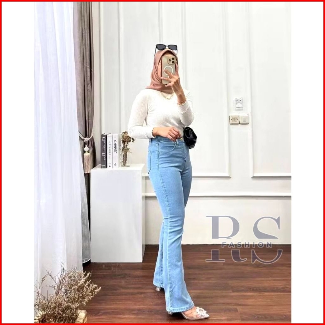 Highwaist Cutbray Jeans Wanita Loose Stretchy 100
