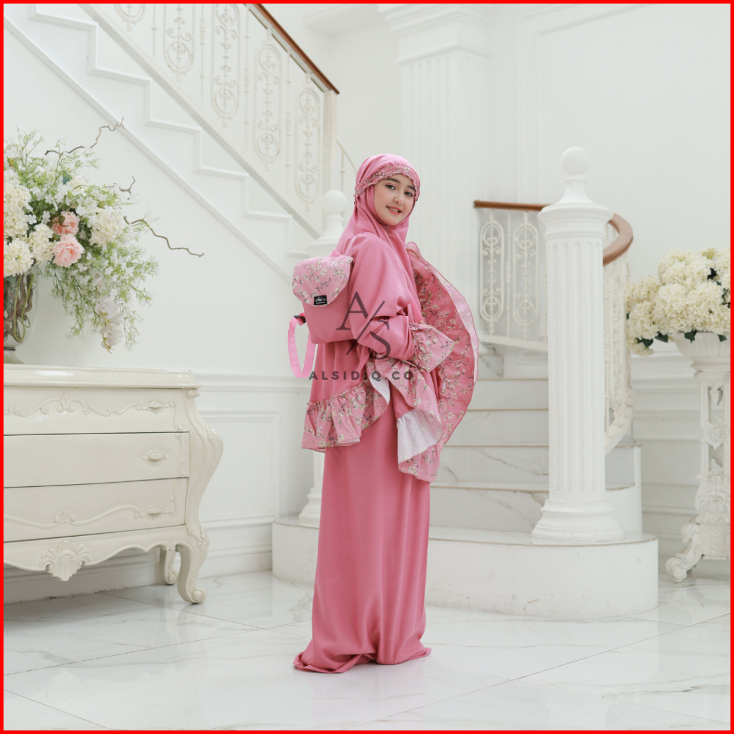 Mukena Anak Katun Tas Ransel Sejadah 2in1 Resleting Premium Usia 2 - 15 Tahun