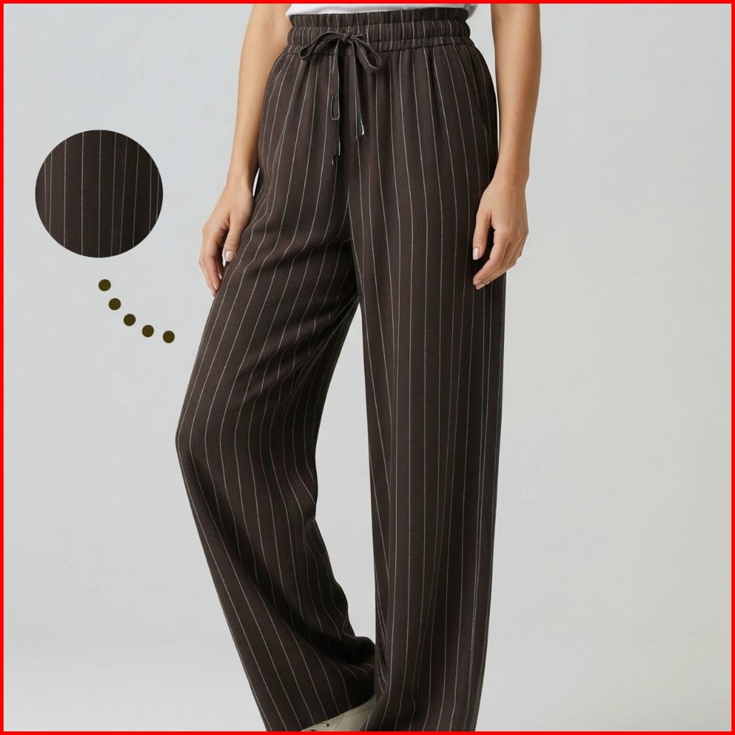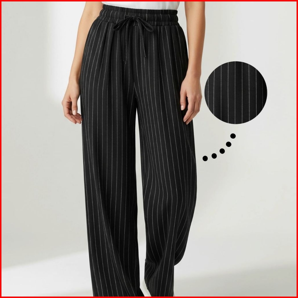 Celana Kulot Wanita Garis Baggy Celana Panjang Kantor Kuliah Bahan Adem Bangkok Stripe Pants Korean Look