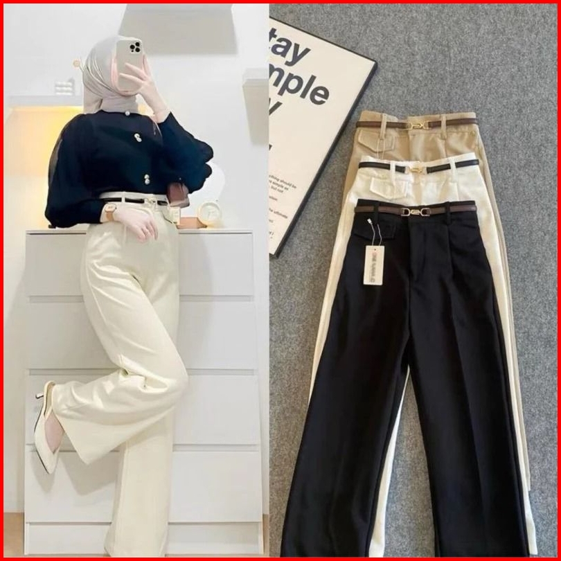 Oro Pants - Loose Pants Troures Wanita - Celana Kulot Wanita - Celana Kerja Anti Kusut Bahan Knit Premium