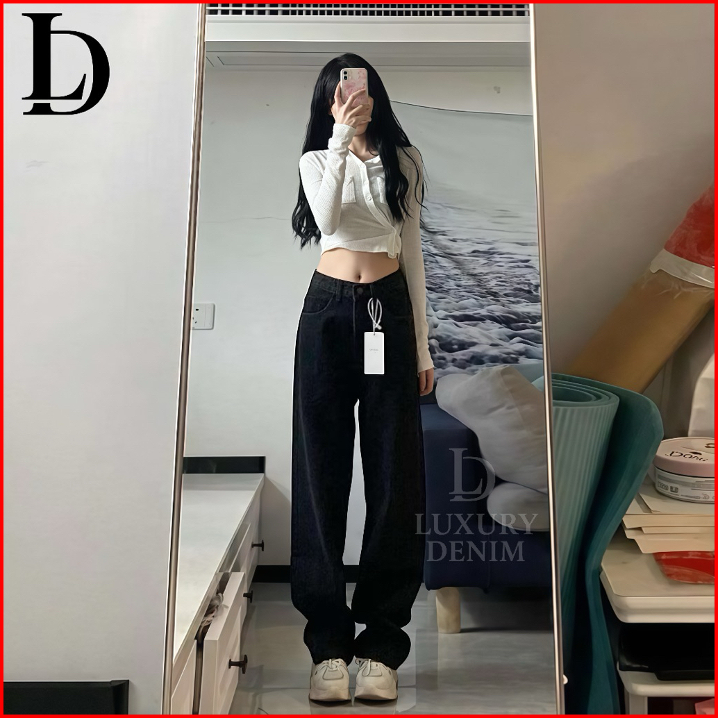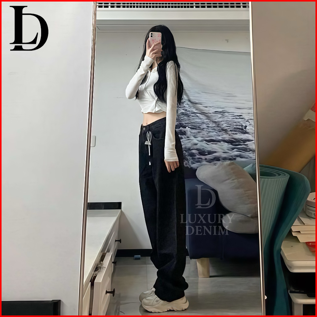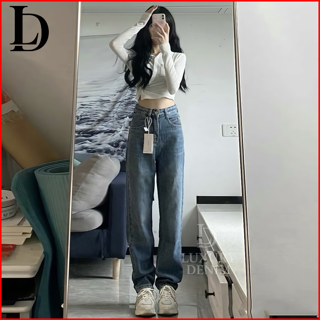 Celana Jeans High Waist Wanita Korean Style Jeans Baggy Pants Serbaguna Kasual Biru Retro 27-34