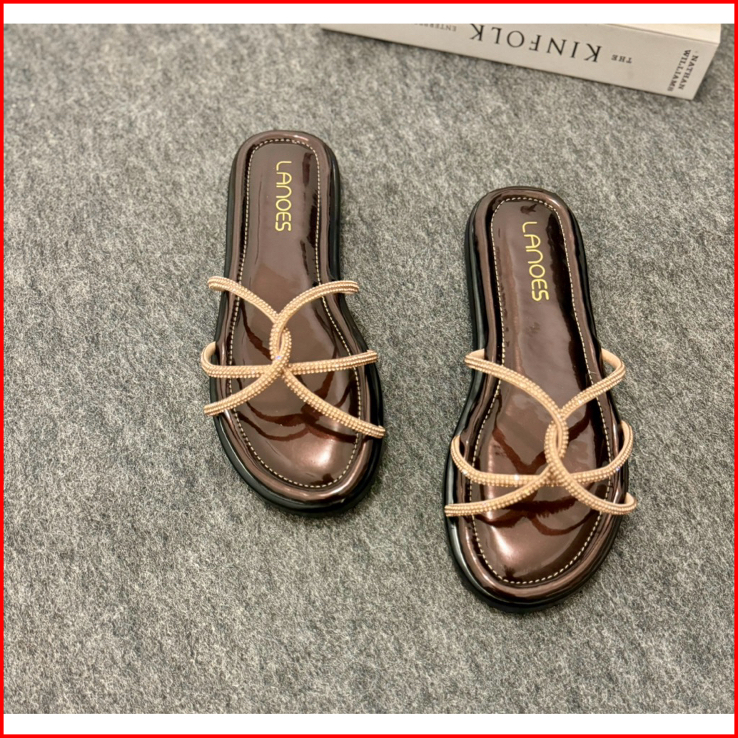 Lanoes Sandal Wanita Teplek Daily Pijakan Empuk Model Kekinian Terbaru Cantik Elegant Permata Blink
