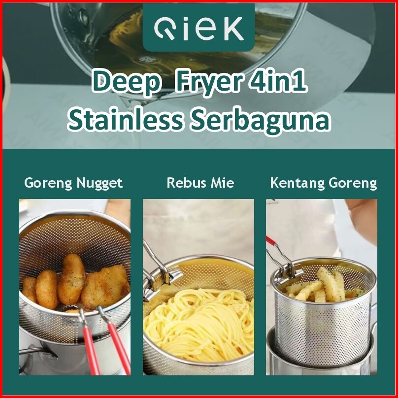 Qiek Deep Fryer 4 In 1 Panci Rebus Panci Penggorengan Saringan Set Panci Penggorengan Panci Serbaguna