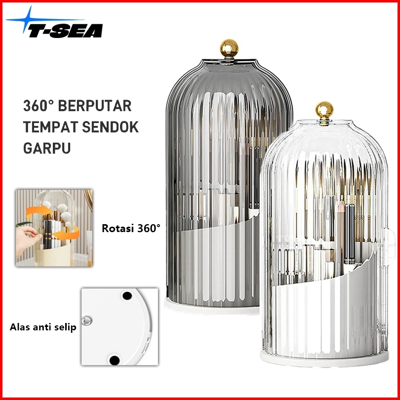 T-sea Tempat Kuas Rias Estetik Berputar 360 Dengan Tutup Tempat Kotak Penyimpanan Organizer Kosmetik Sendok Mewah Brush