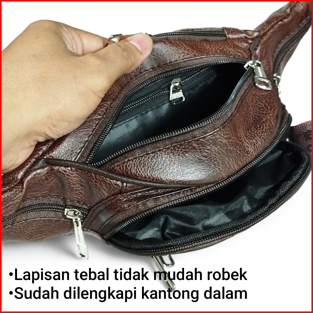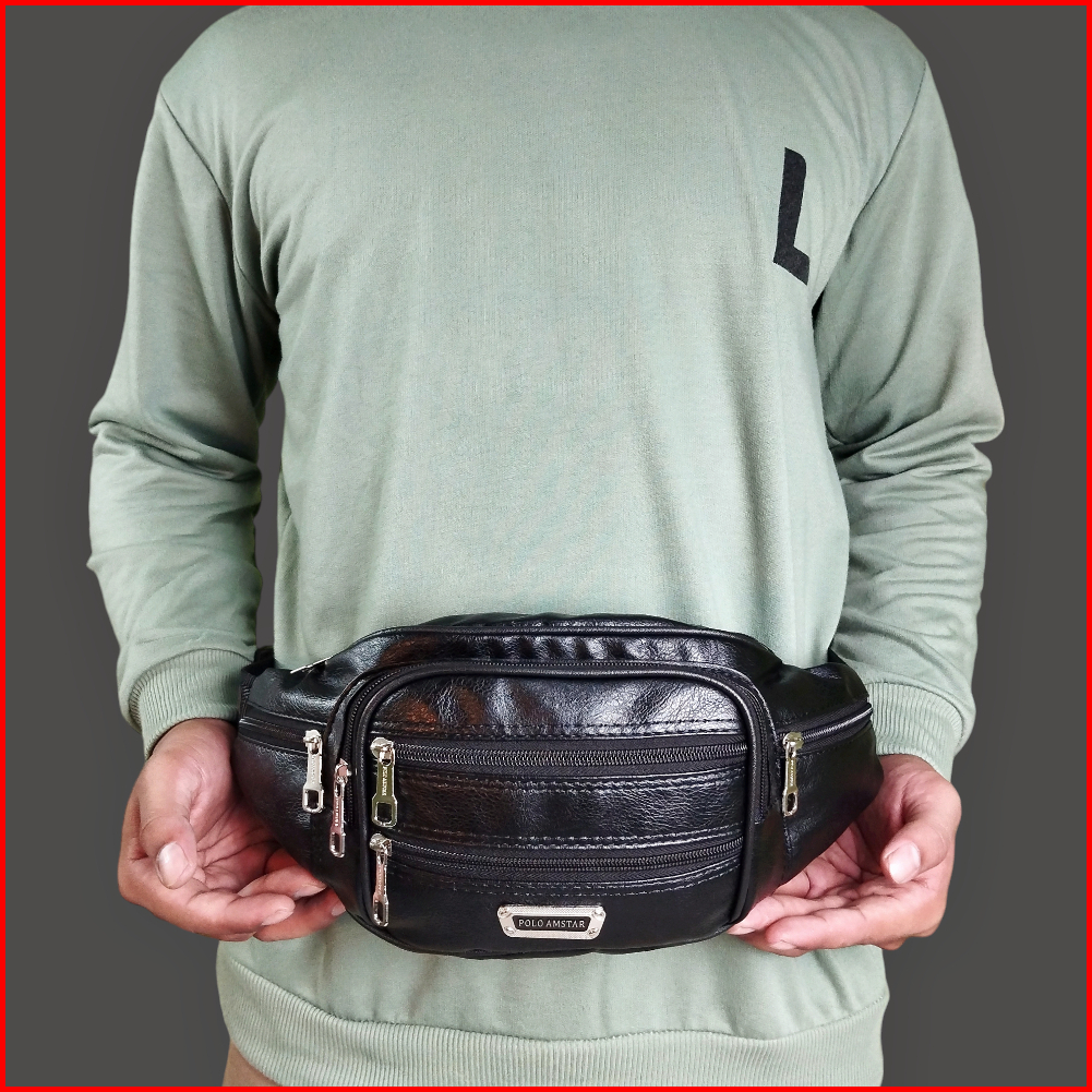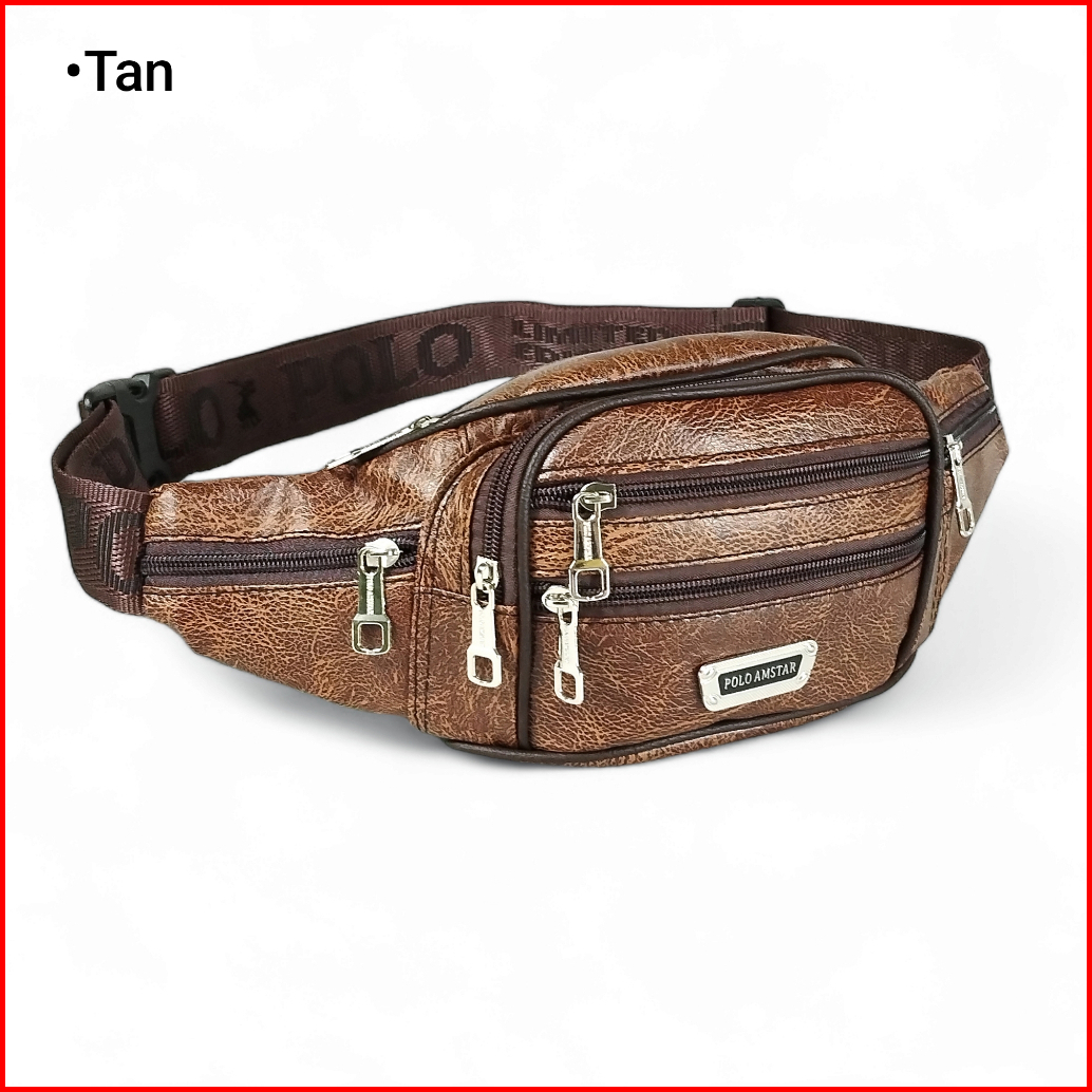 Original Tas Selempang Pinggang Pria 2in1 Polo Amstar Multifungsi Kulit Sintetis Waistbag 8 Ruang