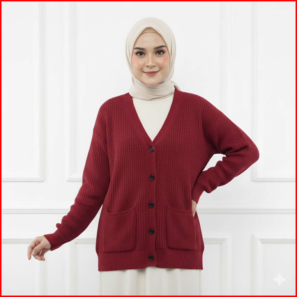Cardigan Merissa Cardigan Oversize Kancing 5 Saku Cardigan Panjang Premium