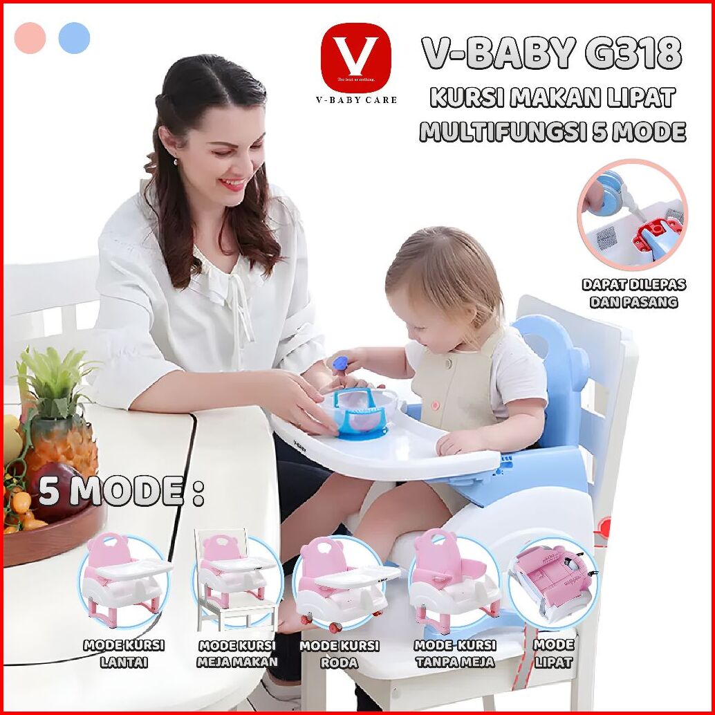 V-baby Care Kursi Makan Bayi Baby Chair Kursi Makan Balita 5in1 Dapat Dilipat Dan Ada Roda- G318