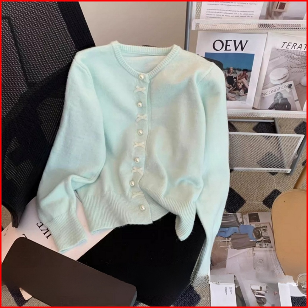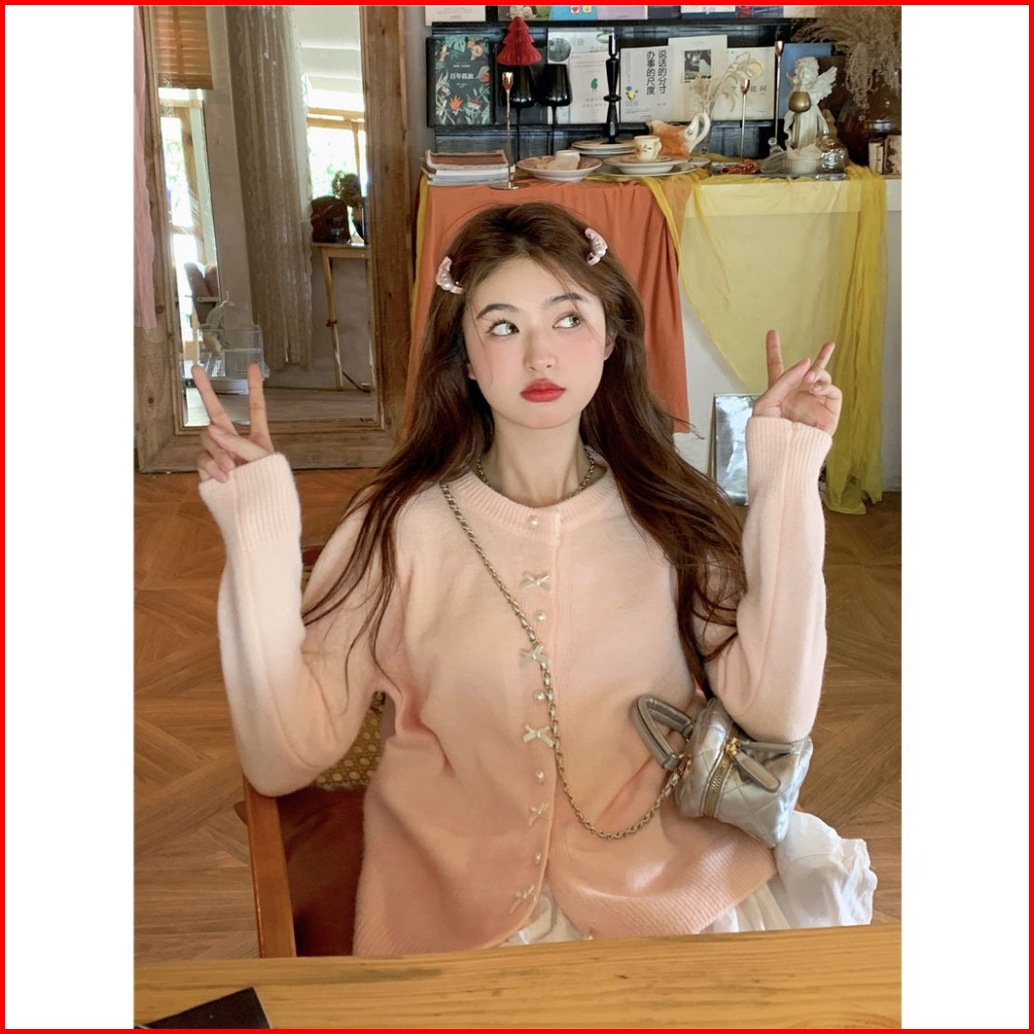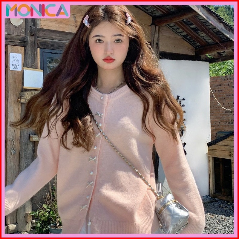 Monica Cardigan Wol Rajut Korean Style Pita Imut Ribbon Girly Coquette