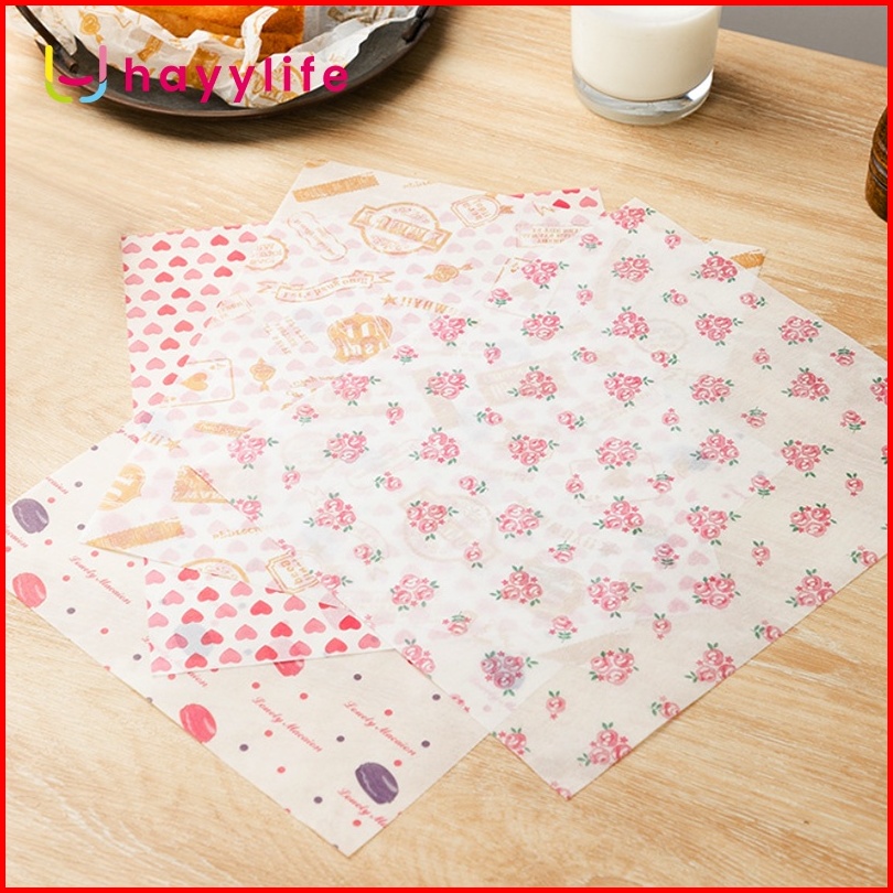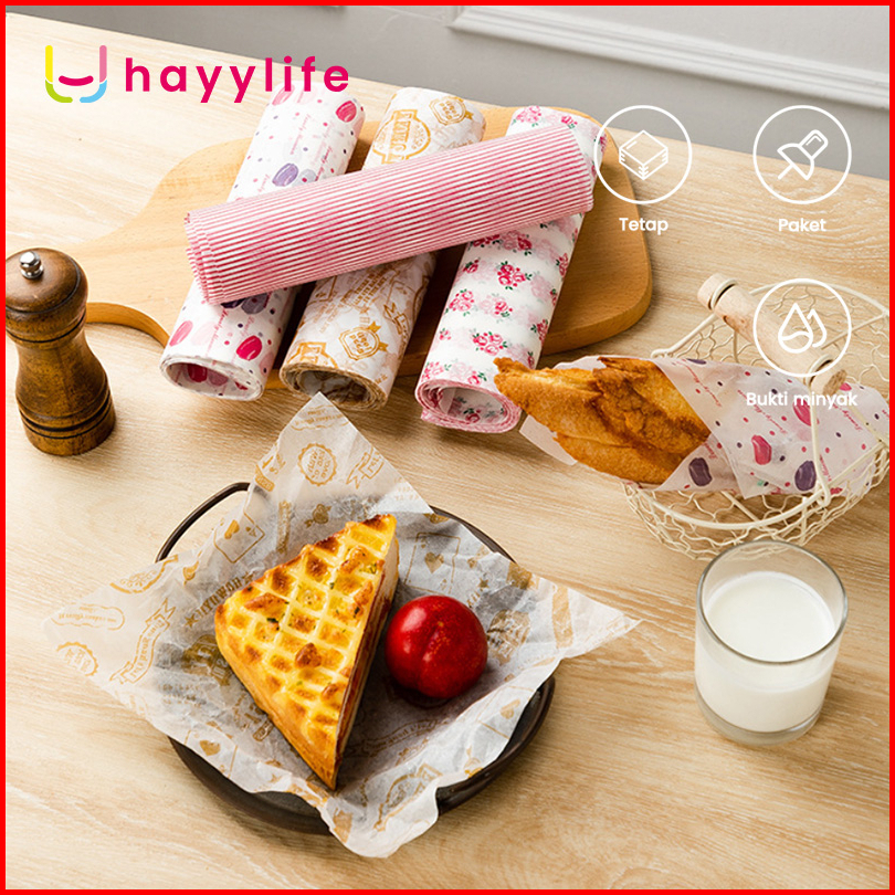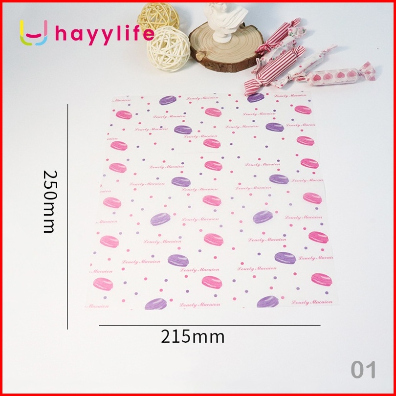 Hayylife Kertas Nasi Motif 25x21 Cm Paper Wrap 50 Pcs Printing Laminasi Food Grade Burger Kebab Macaron Cake Love Hl-aja