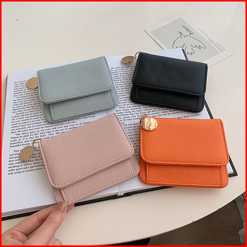 Dompet Lipat Wanita Card Holder Kulit Pu Wanita Dompet Wanita Gesper Dompet Koin Kecil Tempat Kartu Gaya Korea