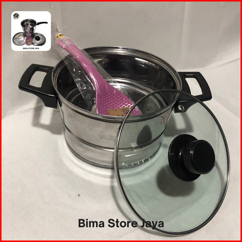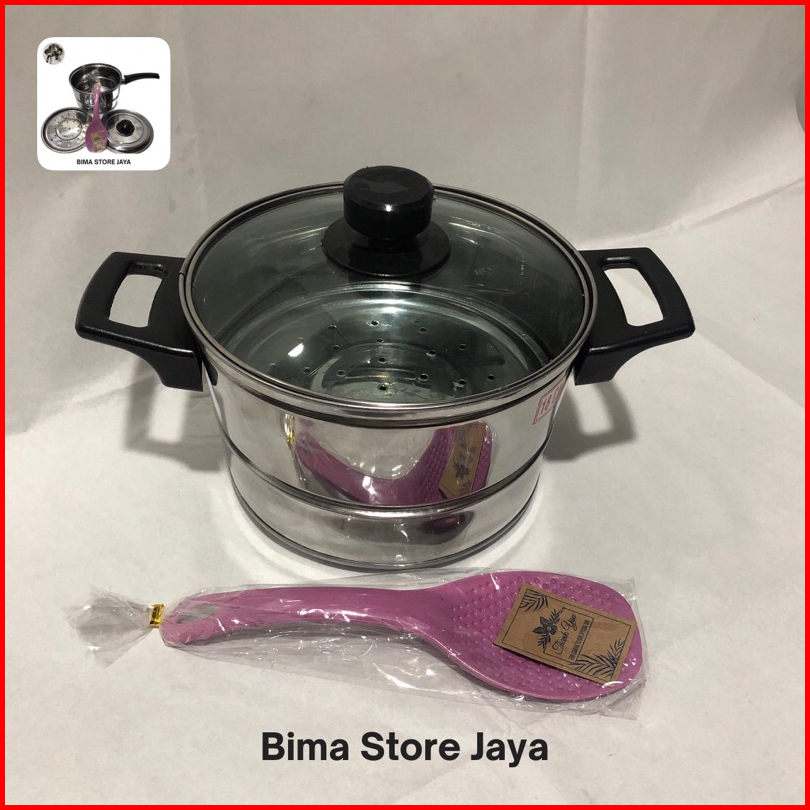 Panci Kukus Mini 16cm Bisa Untuk Mp Asi Pegangan Anti Panas Tutup Kaca Free Entong Nasi