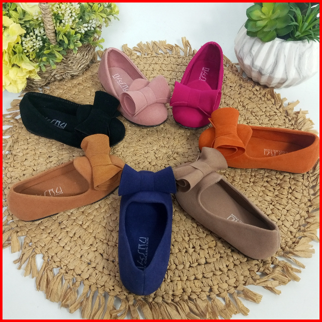 Sepatu Anak Perempuan Flat Shoes 1 2 3 4 Tahun Thn Hitam Pink - B50