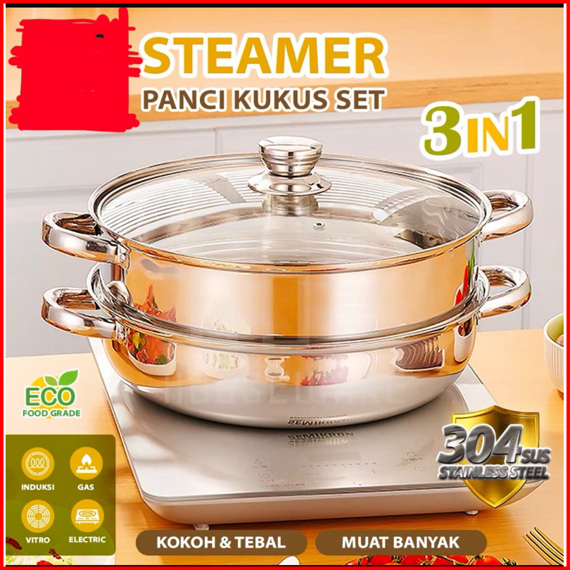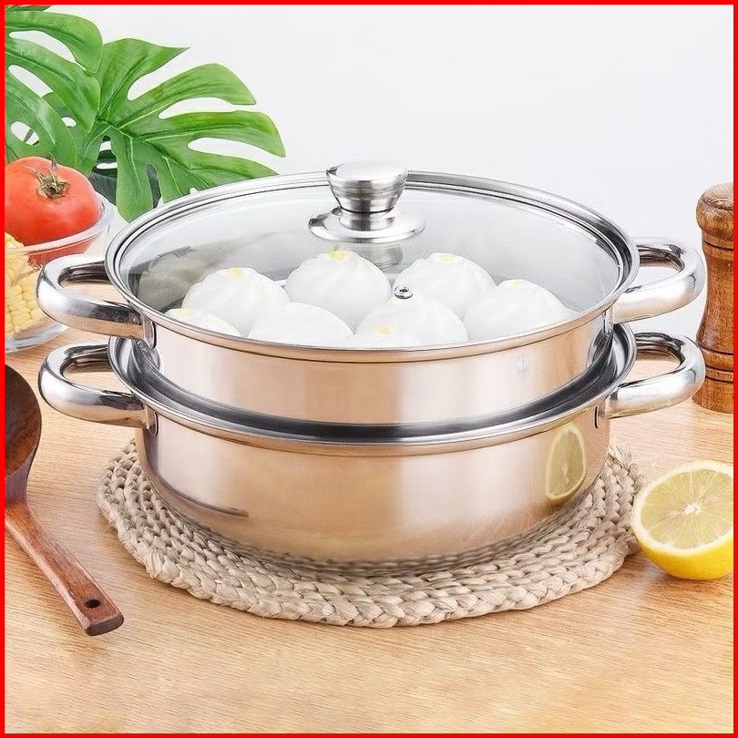 Panci Steamer Kukusan 2 Susun Stainless Steel Tebal Anti Lengket High Quality