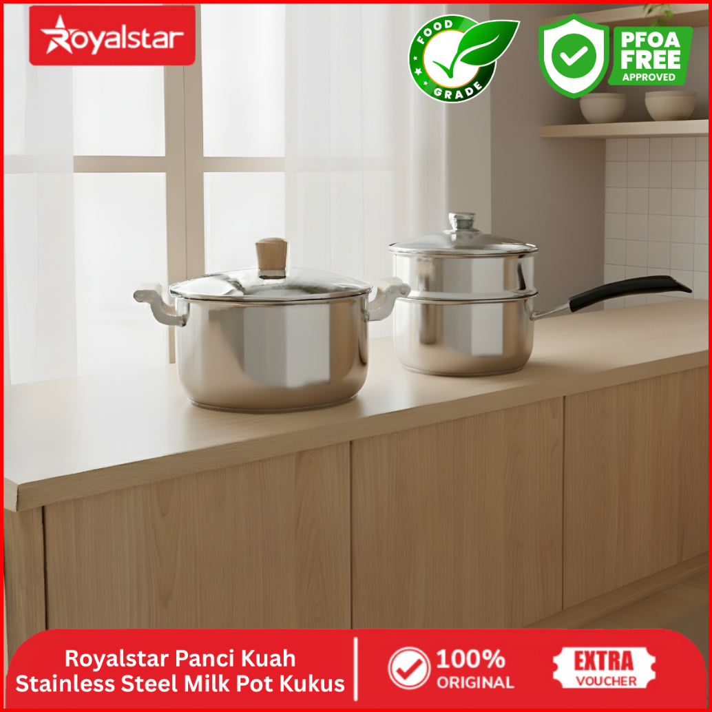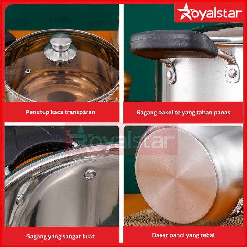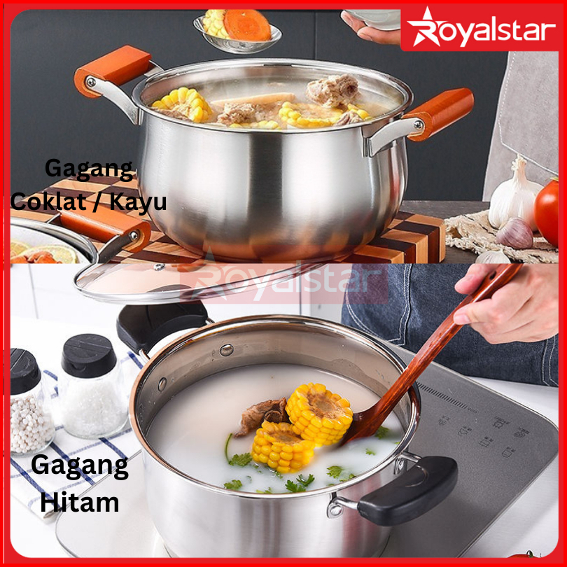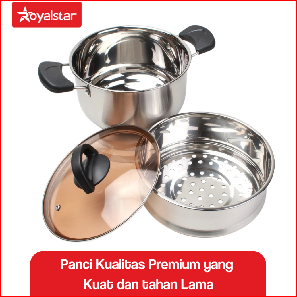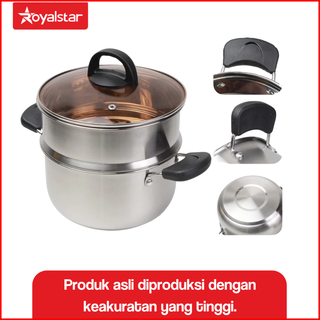 Royalstar Panci Sup Dan Panci Kuah Stainless Steel Panci Steam Kukus Tutupan Kaca