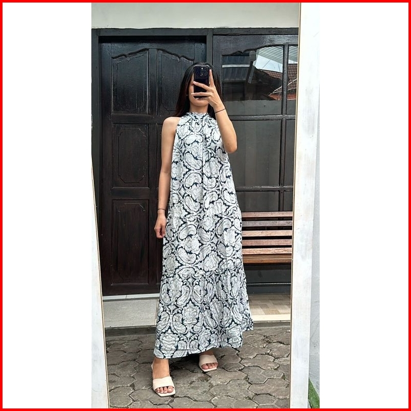 Lecia Dress Tali Pita Motif Polos Dres Pantai Party Ni