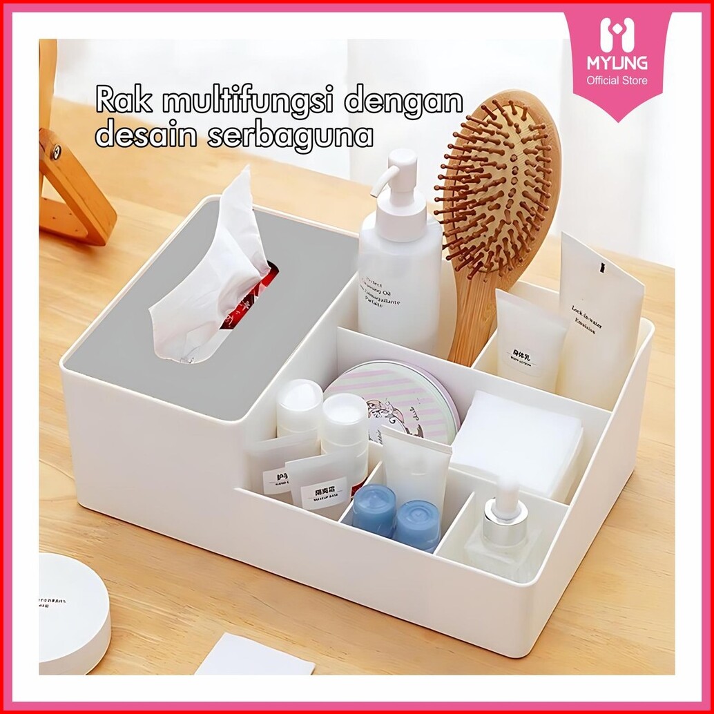 Myung Tempat Penyimpanan Tissue Kotak Penyimpanan Make Up Organizer Meja Anti Selip Multifungsi
