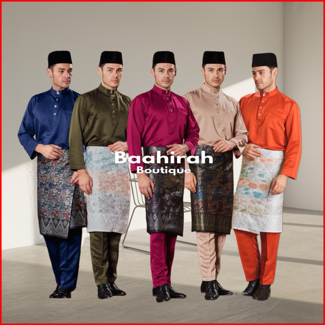 Set Baju Celana Teluk Belanga Cekak Musang Pria Melayu Kurung Setelan Pakaian Adat Malaysia Riau Koko Muslim Satin Velve