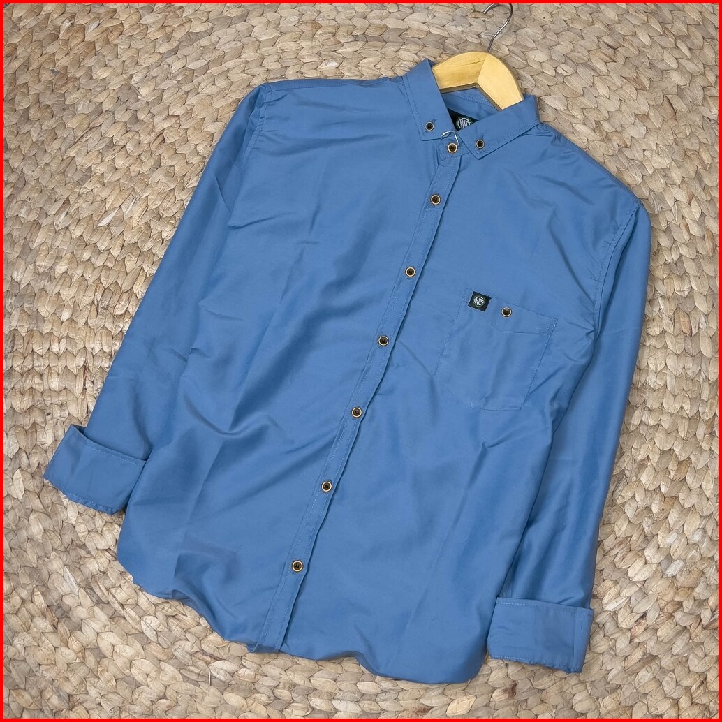 Kemeja Pria Dewasa Polos Lengan Panjang Warna Denim Premium Popelin