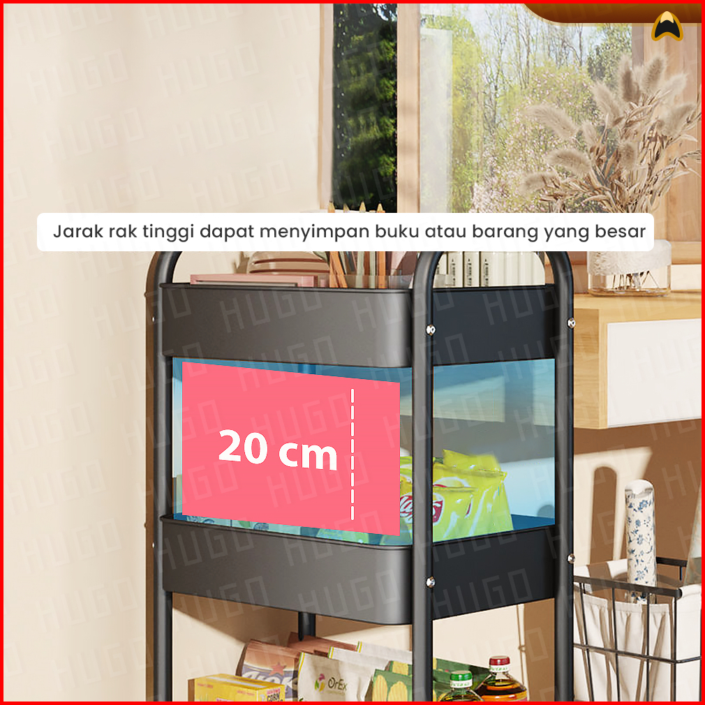 Hugo Houseware Rak Dapur Serbaguna Rak Besi Penyimpanan Bertingkat Serbaguna Rak Troli Susun Dorong