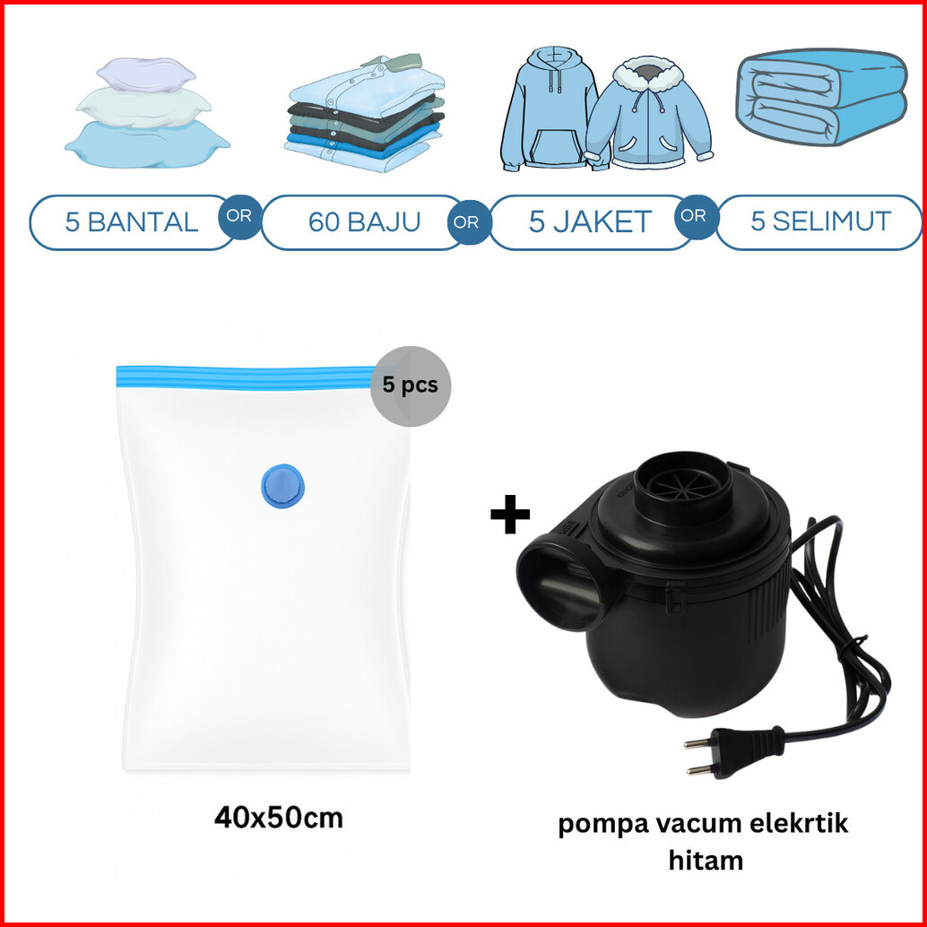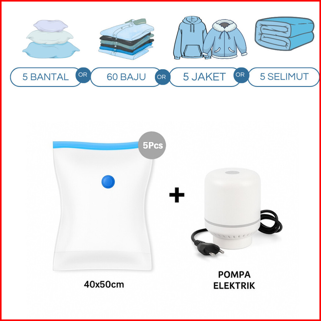 Set Bundling Vacum Traveling Isi 5 Pompa Vacum Pintar Plastik Baju Travel Vacum Plastik Korea