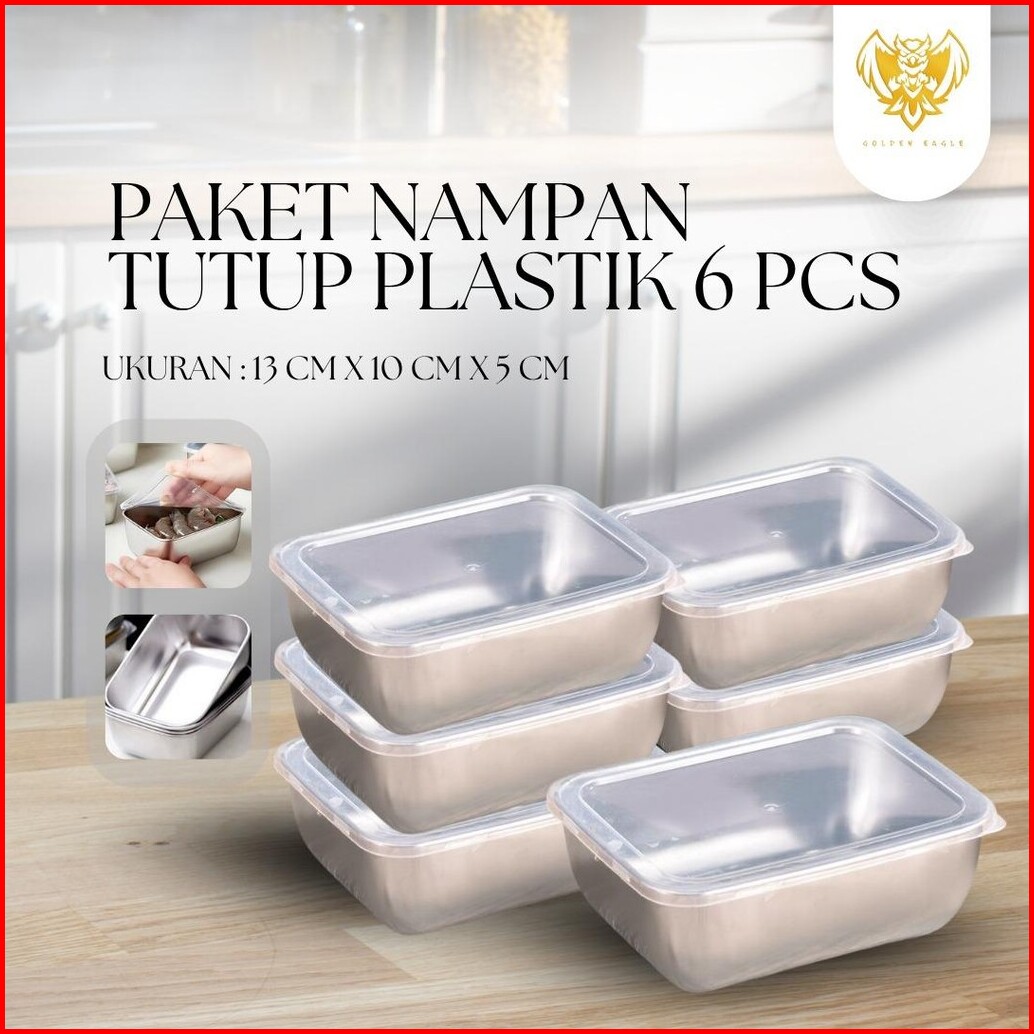 Jss - Paket Isi 6 Pcs Wadah Makanan Food Box Persegi Tempat Makanan Stainless Microwave Food Grade Tutup Food Prep Plast