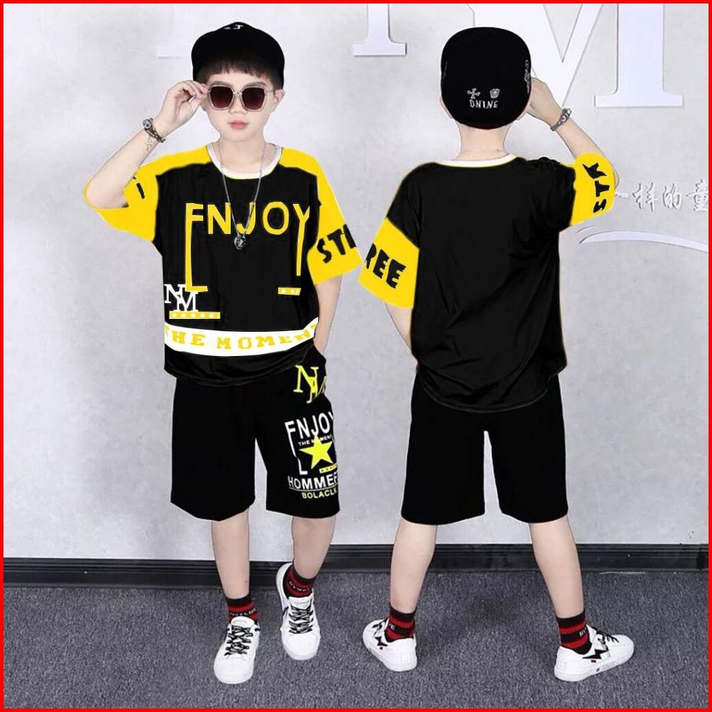 Setelan Pakaian Baju Kaos Anak Laki Laki Enjoy Set Pendek Lengan Pendek Fashion Terbaru Size M L Xl