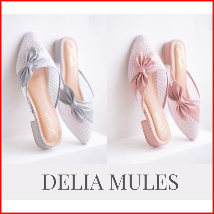 Juragan Online - Delia Flats Sepatu Fashion Wanita Bahan Jala Brukat Payet Sandal Pita Cantik