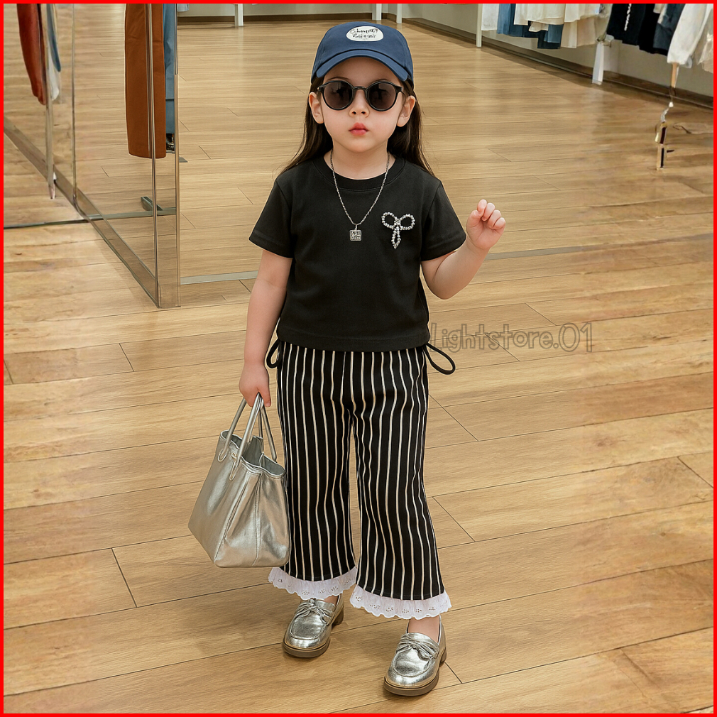 Setelan Anak Perempuan Celana Salur Renda Terbaru Bahan Japan Linen Style Usia 6 Bulan - 8 Tahun