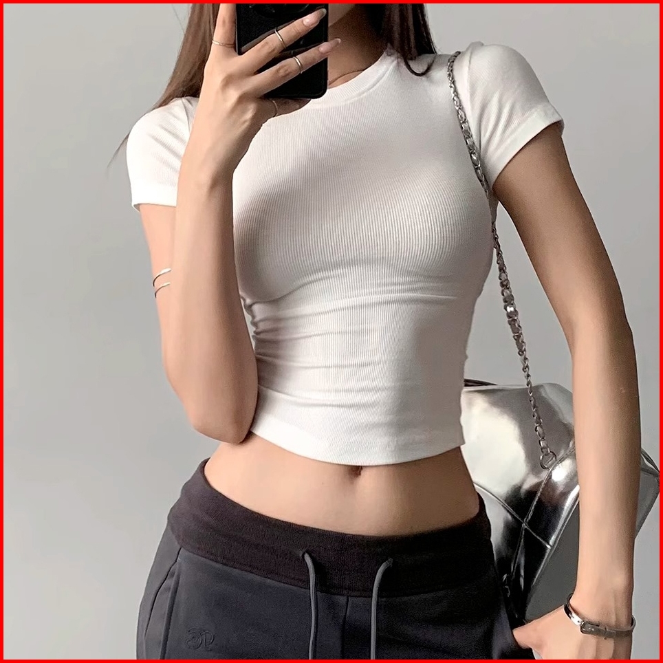 Premium Korea Import Basic Polos Crop Rib Kaos Atasan Melar Slim Fit Seksi Wanita