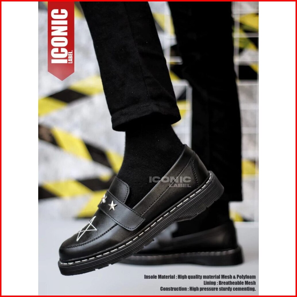 Sepatu Penny Loafers Docmart Bintang Hitam Pria Wanita Star Sora Formal Kasual Emblem Bintang