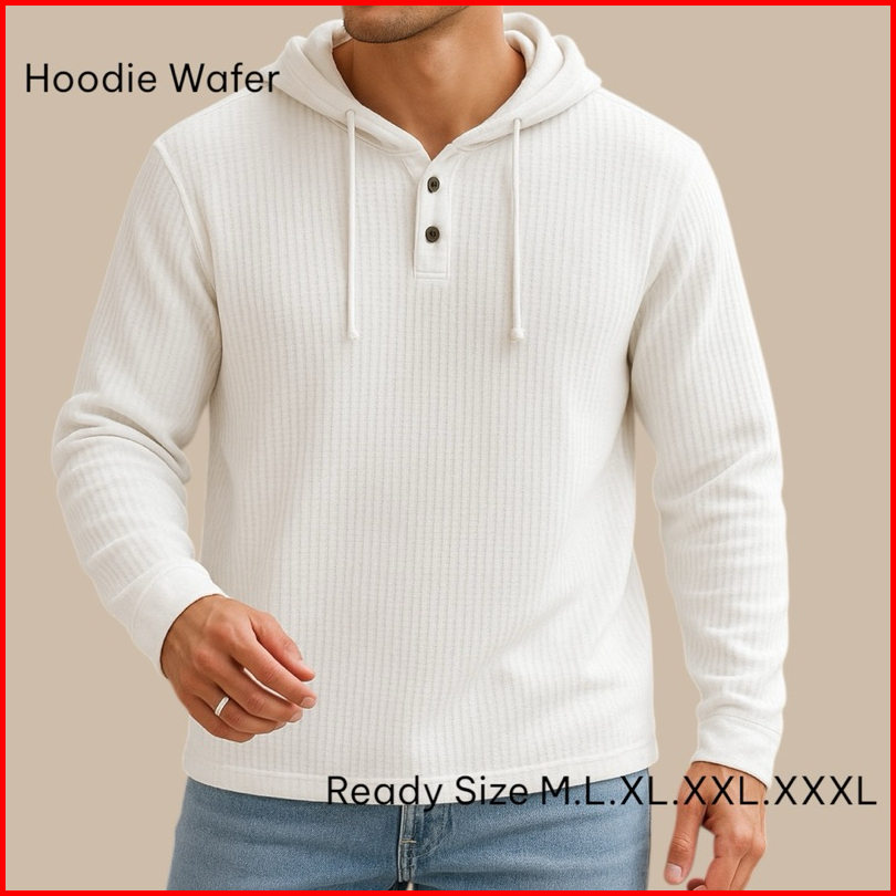 Hoodie Pria Lengan Panjang Bahan Waffle Premium