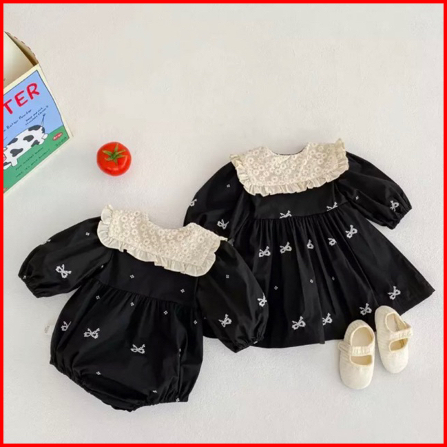 Krah Kupu Pita Dress Dan Romper Krah Kupu Pita Couple Kakak Adik Anak Perempuan Cewek Newborn Sampai 3 Tahun Baju Lebara